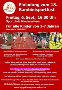 Am Freitag, 6. September findet – für alle Kinder zwischen 3- 7 Jahren – das 18. Bambinisportfest statt.