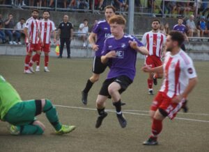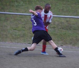 Jannik Hergenhahn m. beim Torabschluß zum 1:0 für Eschhofen/ Lindenholzhausen – Foto: Franz-Josef Blatt