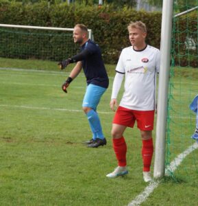 Über die gesamte Dauer des Spiels merkte man eher selten, wer der Tabellenführer ist und wer die Mannschaft mit 4 Niederlagen in Folge. Die Gäste etwas abgeklärter, doch die FSG hielt gut dagegen. So dauerte es bis zur 24. Minute, ehe ein Standard für die Führung sorgte. Nach einer Ecke von Joshua Gabb landet der Ball irgendwie bei Leon Machoczek im „Hinterhalt“, der dann keine Mühe hat, das Leder aus gut 12 Meter einzunetzen. Danach plätschert das Spiel so vor sich hin und wie aus dem Nichts fällt dann der Ausgleich. Nach einem weiten Ball aus dem Halbfeld von Felix Wind, nutzt Johannes Helfenstein eine kurze Schwäche in der Gästeabwehr und netzt per Direktabnahme zum 1:1 ein. Sehenswert. Nur 5 Minuten später fast die erneute Führung der Gäste, doch Joshua Gabb jagt das Leder aus 5 Meter über den Kasten. Nach einer längeren Verletzungspause in der 43. Minute von Ben Köppel (Nach Zusammenprall mit einem eigenen Spieler wurde er mit Platzwunde am Kopf in das Krankenhaus gebracht. Gute Besserung an dieser Stelle vom gesamten Team) nutzten die Gäste die Nachspielzeit und eine kleine „Verwirrung“ der Heimdefensive durch Niklas Simonis, der aus dem Gewühl unhaltbar für Schmidt im FSG-Gehäuse zur erneuten Führung trifft. Am Ergebnis änderte sich auch nach weiteren 45 Minuten nichts, da die Gäste auf Verwaltungsmodus schalteten und die Kornbrenner 2 gute Möglichkeiten durch Cedric Heckelmann (62.) und Sebastian Frassmann mit dem Schlusspfiff nicht zum Ausgleich nutzten. Am Ende ein glücklicher Sieg der Gäste, denn die FSG hätte einen Punkt auf jeden Fall verdient gehabt. So steht die 5. Niederlage in Folge für die Kornbrenner auf dem Zettel und man muss jetzt unbedingt den „Umschalter“ finden.
