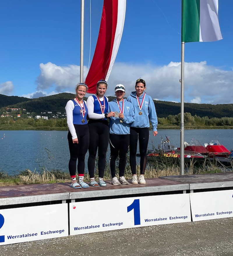Louisa Will und Charlotte Bergmann gingen im Frauen-Doppelvierer auf die Strecke. In Renngemeinschaft mit Weilburg durften sich auch die beiden Juniorinnen über die Goldmedaille freuen.