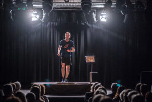 In Limbach macht er am 9.11. beides. Er erzählt beim Laufen – auf der Bühne auf dem Laufband. Das kann nur er und ist so auch noch nie dagewesen!