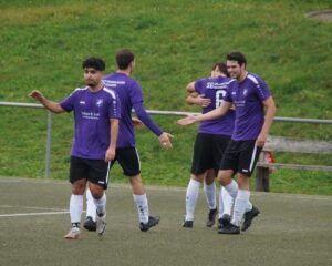 Nach der Pause dann gleich eine dicke Torchance der SG als Robin Jung nach einem langen Pass den Ball direkt auf das Tor brachte, aber der Gästetorhüter sehr gut passierte. Als dann nach einem schlampigen Pass die Gäste einen Konter gekonnt durch Schuth zum Ausgleich nutzten, schien das Spiel zu kippen zu können. Dagegen hatte aber E, Fachinger etwas der eine Ball als Bogenlampe ins lange Eck bugsierte.und den alten Abstand wieder herstellte. Danach setzten die Gäste aggressiv nach, verloren aber dann mit wiederholtem überharten Spiel den eigenen Spielfaden und arbeiten sich statt am Gegner am Schiedsrichter ab. Den Deckel drauf machte dann wieder Elias Fachinger der aus der Halbdistanz mit einem platzierten Flachschuss dem Torhüter keine Chance ließ. Die letzte Viertelstunde war durch Hektik und viel Reklamieren geprägt, ohne dass Zählbares festzuhalten blieb.