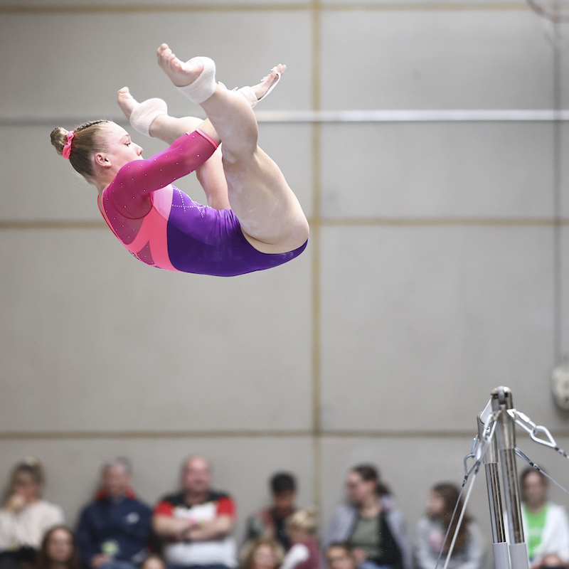 Thea Klämt turnte erstmals einen kompletten Vierkampf für ihr Team. Mit starken 12,80 P. am Sprung für ihren dynamischen Überschlag Salto vorwärts in den perfekten Stand und der dritthöchsten Wertung aller Turnerinnen startete sie optimal in den Wettkampf. Und auch am Barren gelang ihr die Übung, diesmal wieder mit Jägersalto, fehlerfrei. Mit 10,80 P. steuerte Thea Klämt auch hier ebenso wie am Sprung die meisten Punkte zum Mannschaftsergebnis bei. Am Balken, ansonsten das Paradegerät des Teams, zeigten die Leipzigerinnen diesmal Nerven. Auch Thea Klämt konnte leider ihre Trainingsleistung nicht abrufen, musste Absteiger in Kauf nehmen und blieb unter ihren Möglichkeiten. Ganz anders dann wieder am Boden: mit einem sicher gestandenen Doppelsalto rückwärts und einer ausdrucksstarken Übung schloß Thea Klämt den Wettkampf erfolgreich ab und belohnte sich mit Rang 6 in der Einzelwertung der 2. Bundesliga.