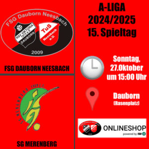 Nach längerer Zeit steht mal wieder ein Doppel-Spieltag auf dem heimischen Rasen in Dauborn an. Die Elf von Maxi Reitz empfängt zu Hause den Tabellenneunten aus Merenberg. Wie die Kornbrenner, spielt auch die Elf von Mustafa Günes eine wechselhafte Saison, in der sich Sieg und Niederlage fast regelmäßig abwechseln. Folgt man also dem Gesetz der Regelmäßigkeit, wäre ein Sieg für die Gastgeber eigentlich gesichert, aber hätte, wäre und vielleicht. Fakt am kommenden Sonntag: In der Nacht zuvor werden die Uhren wieder einmal um eine Stunde zurück gestellt und somit können die Spieler beider Teams ausgeruht zu Werke gehen. Die Mannschaften sind nur durch 2 Punkte getrennt und somit besteht für die Kornbrenner bei einem Sieg nicht nur die Möglichkeit Boden gut zu machen und den Gegner hinter sich zu lassen, sondern auch ein kleines Polster zwischen sich und den Abstiegsplätzen zu schaffen. Sollten aber die Gäste am Ende den Dreier mit „unter die Burg“ nach Merenberg nehmen, würde die Günes-Elf vorläufig einmal im sicheren Mittelfeld landen und die FSG müsste sich deutlich nach unten orientieren. Schaun mer mal, was am Ende dabei herauskommt.