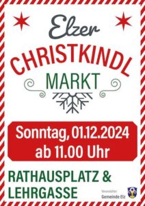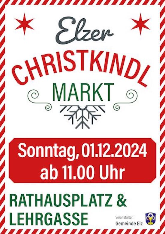 herzlich willkommen zum Elzer Christkindlmarkt am 1. Dezember! Wir freuen uns sehr auf unseren weihnachtlichen Markt mit vielen schönen Ständen und unserer neuen Schlittschuhbahn mitten auf dem Rathausplatz! Wir laden Sie und Ihre Familien ganz herzlich ein, die Gelegenheit für einen kleinen Bummel zu nutzen, einen leckeren Glühwein oder Kakao zu trinken, eine Waffel zu essen und die schöne Stimmung an den zahlreichen Ständen unserer Hobbykünstler, Vereine, Kirmesburschen und Kitas zu genießen! Der Gewerbeverein sorgt wie jedes Jahr für leuchtende Augen auf dem Kinderkarussell und hat den Nikolaus eingeladen! Auch lohnt sich ein kleiner Spaziergang durch den Ort mit einem Blick in die weihnachtlich dekorierten Schaufenster – vielleicht entdecken Sie dabei auch das ein oder andere Weihnachtsgeschenk! Schauen Sie doch einfach mit Ihren Lieben mal vorbei!