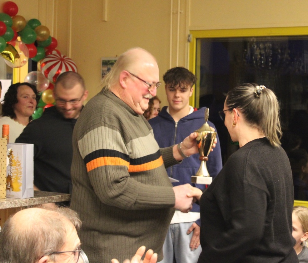 Am Ende der kurzen Bilanz bedankte sich der 1. Vorsitzende bei allen Helfern, Spendern und Sponsoren und allen, die in irgendeiner Weise zum Wohle des Vereins tätig waren und den Verein unterstützt haben und wünschte allen ein frohes und friedliches Weihnachtsfest, sowie alles Gute, vor allem Gesundheit, für 2025. LfV – Sportlerin des Jahres 2024 wurde Leslie Arbeiter (Kreismeisterin 100 m, Weit, Hoch, Kugel, Diskus,4-Kampf und 4-Kampf-Mannschaft, Hessenmeisterin 5-Kampf, Schleuderball und Steinstoßen und Deutsche Meisterin im Schleuderball), vor Jannik Schmidt (Hessenmeister Schleuderball und Steinstoßen, Deutscher Meister im Steinstoßen) und Alia Steinmetz (Kreismeisterin mit der 4 x 100 m Staffel, Hessenmeisterin im Schleuderball und Deutsche Vizemeisterin im Schleuderball).