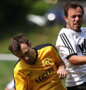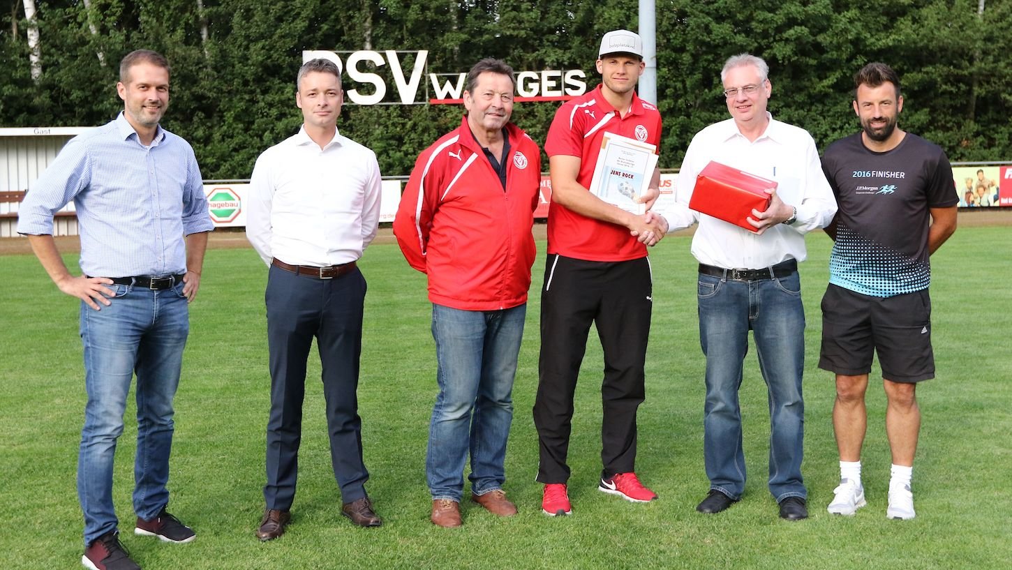 Jens Rock wurde von den sport 11 Lesern als bester Torhüter in der Kreisoberliga (Saison 216/17) gewählt. Rechts von ihm sport 11 Chef Thomas Groß, der ihm die Urkunde mit Geschenk überreichte.