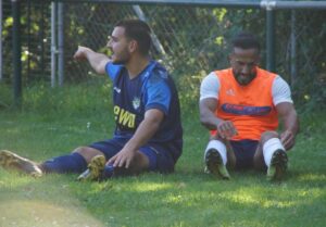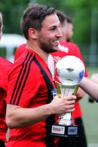 Für die passende Mimik zum Kreispokalfinale zwischen dem TuS Dietkirchen 1911 e.V. (Original) und dem SV Rot-Weiß Hadamar sorgte Dietkirchens Moses Nickmann (links). Könnte so leicht in die Richtung „Ätsch, wir haben den Pott“ gehen