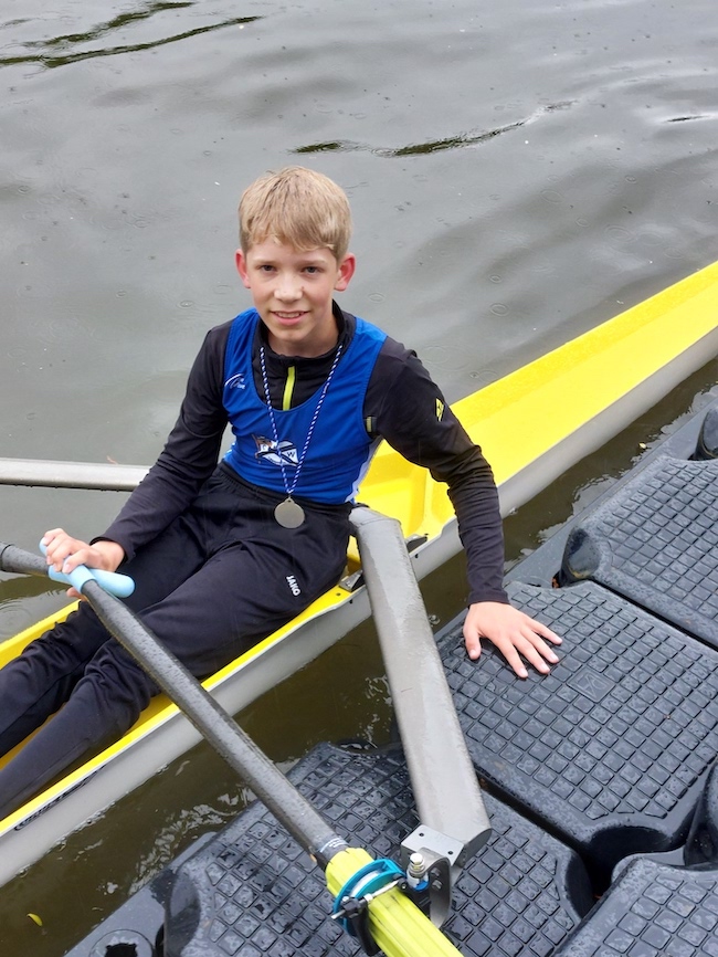 Im Jungen Einer 13 Jahre Leichtgewicht fuhr Jonas Schicker nur gegen die Zeit, konnte auf beiden Distanzen überzeugen und sicherte sich die Qualifikation für den Bundeswettbewerb.