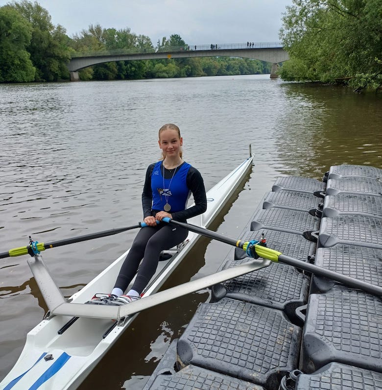 Bei den Mädchen gingen Simona Singh und Ariana Wirth an den Start. In ihrem ersten gemeinsamen Rennen mussten sie erkennen, wie wichtig gemeinsame Trainingskilometer sind und gingen als vierte durchs Ziel. Über die 1000m Strecke traten die beiden dann noch mal gemeinsam mit Charlotte Häuser und Katarina Simunovic an. Hier wurden sie Zweite hinter dem Boot aus Kassel und konnten sich so ebenfalls für den Bundeswettbewerb im Mädchen Doppelvierer mit Steuermann qualifizieren. Dort wird dann Malte Weilnau das Steuer von Tobias Schicker übernehmen.