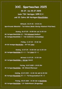 Die traditionellen Sportwochen des TSV Heringen und gleichzeitig 20 Jahre SG Heringen/Mensfelden starten am 02.07.25.