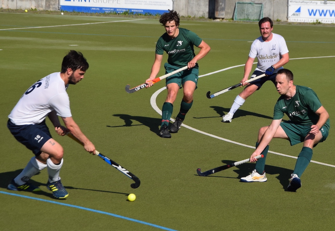 Die Gastgeber starteten extrem motiviert und übten in den Anfangsminuten bereits großen Druck auf den Gegner aus. Das führte zu einem Foul im Schusskreis an David Schneider und dem 1:0 per Siebenmeter durch Kapitän Lukas Schmitt. Eiskalt versenkte er die Kugel unhaltbar links. Kurze Zeit später war es Max Bommel, der durch eine eiskalt verwandelte Strafecke auf 2:0 stellte. Nach dem ersten Viertel sah es so aus, dass Limburg den Sieg locker über die Zeit bringen könnte. Scheinbar fühlten sich die Lahnstädter aber zu sicher und Ludwigshafen spielte nach der Viertelpause plötzlich auf Augenhöhe bissig mit. „Wenn der Gegner draufgeht, das liegt uns nicht“, gab Döppes zu. Limburg hatte Glück, dass der Gast bei zwei Strafecken versagte und die Kugel nicht aufs Tor bringen konnte. Doch ein Schuss von halbrechts brachte doch den 1:2-Anschluss. Die Brisanz des Spiels zeigte sich auch verbal auf dem Platz und mündete in mehreren Zeitstrafen. Als ein freistehender Ludwigshafener das verdiente 2:2 erzielte, wurde es auf dem Platz nochmal richtig spannend. David Schneider hätte mit einer Riesen-Möglichkeit Limburg jubeln lassen können, doch er verpasste den Siegtreffer. Auf der anderen Seite hatte Limburg großes Glück, als nach einem schnellen Konter ein Ludwigshafener mit dem Rücken alleine vor dem Torwart stand. Doch Niklas Müller behielt die Nerven und rettete seiner Mannschaft mit einer Glanzparade den Punkt und damit den Klassenverbleib.