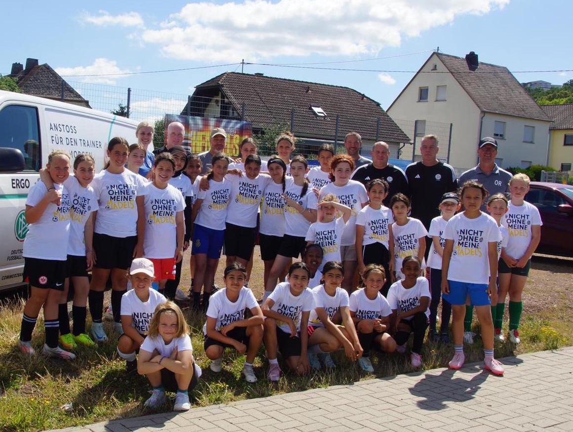 Der TuS Staffel 1914 e.V. veranstaltete am 28.06.2025 einen „Tag des Mädchenfußballs“ – und durfte sich über eine großartige Resonanz freuen. Insgesamt 35 Mädchen in verschiedenen Altersgruppen waren mit dabei und erlebten einen tollen Tag auf dem Sportplatz an der Mainstr. Ausgestattet mit einem T-Shirt „nicht ohne meine Mädels“ und einer Trinkflasche absolvierten die Mädchen unter der Leitung von Heiko Jung und Robert Diehl vom DFB Mobil, dem ehemaligen Profi der Frankfurter Eintracht Michael Blättel und vom TuS, Laura Roos, Michael Beckers und Mike Pryleswski mit großer Begeisterung verschiedene Übungen und kleine Spiele.Dabei waren sowohl Anfängerinnen als auch fortgeschrittene Spielerinnen vertreten – und jede Menge Spaß garantiert! Besonders erfreulich: Einige Mädchen standen zum ersten Mal auf dem Fußballplatz und waren sofort begeistert.