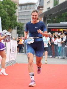 Nach einer verletzungsbedingten Pause im vergangenen Jahr hat Lena Schmidt eine neue sportliche Herausforderung gesucht und gefunden. Am vergangenen Wochenende absolvierte sie beim City Triathlon Frankfurt erfolgreich ihren ersten Wettkampf über die olympische Distanz: 1,5 Kilometer Schwimmen, 45 Kilometer Radfahren und 10 Kilometer Laufen.