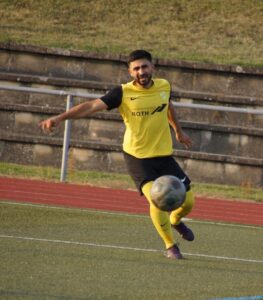 Im Lied „A horse with no Name“ von America aus dem Jahr 1971 lautet es im Text: „Die Hitze war heiß und der Boden war trocken. Doch die Luft war voller Geräusche“. Es war heiß, der Kunstrasen staubte leicht und die Geräusche in der Luft waren eher die Ruhe vor dem Sturm. Von Beginn an beide Teams auch „on fire“ und die TSG zündetet sofort die Rakete. Gut eine Minute gespielt, langer Ball in Richtung Gäste-Strafraum, Laurens Seelbach in Neuer Manier per Fuß, doch der Ball wird zum Bumerang. Das Leder landet auf der linken Seite beim freistehenden Al Mohammad „Hamudi“, der fackelt nicht lange und legt den Ball in die Mitte, wo Fabian Zukowski aus kurzer Distanz nur einschieben braucht. Großer Jubel auf Seiten der Gastgeber, „Hallo-Wach“ Effekt bei den Gästen, die fortan die Spielkontrolle übernahmen und schon fast im Gegenzug den Ausgleich auf dem Fuß haben.