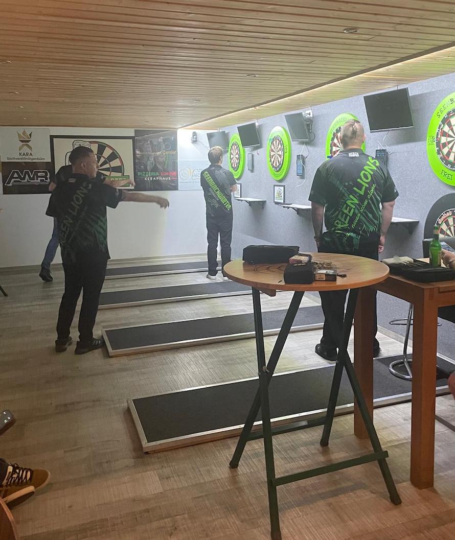 Mindestens genauso stark zeigte sich die zweite Mannschaft der TuS-Staffel Green Lions. Sie konnte tags zuvor ihr zweites Ligamatch in der RDV-Kreisliga 2B auswärts bei Iceman 2 in Usingen mit 9-3 (29-17Legs) gewinnen und konnte so die 5-7 Auftaktniederlage vom ersten Spieltag gegen Pirates of Darts aus Gießen korrigieren.