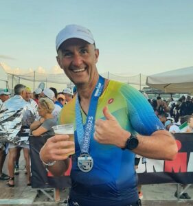 Hört man von der Emilia Romagna in Norditalien, denkt man eher an einen Urlaub an der Adria mit gutem Essen und Wein. Nicht so für die Mitglieder der VLG Eisenbach Andrea und Mike Enders. Für beide stand am Sonntag dem 21.09.2025 der Ironman 70.3 in der Stadt Cervia mit den Disziplinen 1,9 Kilometer Schwimmen, 90 Kilometer Radfahren und einem Halbmarathon mit 21,1 Kilometern Laufen auf dem Programm. Das sind zusammen 112 Kilometer und in Meilen umgerechnet 70.3. Daher die Bezeichnung. Für beide war es ein bisher großartiges Erlebnis, denn in Cervia werden die Starter zum Schwimmstart von einem Blasorchester an die Algarve begleitet. Die Radstrecke führte durch die Emilia Romagna, vorbei an tausenden rosa Flamingos im Naturpark und durch die berühmten Weinberge des berühmten Sangiovese Weins. Der abschließende Halbmarathonlauf führte in 3 flachen Runden durch das historische Stadtzentrum von Cervia. Bei den Männern waren es 1.614 Finisher und bei den Frauen insgesamt 433. Andrea beendete ihr Rennen auf Rang 7 der Altersklasse F 60-64 mit der Zeit von 7:04:05 Stunden. Mike belegte in der Klasse M 55-59 Platz 71 in 6:07:57 Stunden und war mit der tollen Leistung bei seinem Ausdauerdreikampf rundum zufrieden.