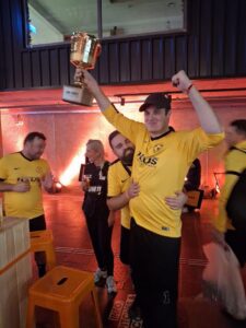 Und die Elzer? *Cool wie Tiefkühlpizza.* Schuss für Schuss wurde jeder Elfer souverän versenkt. Das SVE-AH Team bestand aus: Torwart-„Eisbär“ Timo Schlag, Cristiano Barbosa da Silva, Jörg „Willi„ Rump, Adrien Born, Marcus Balmert, Mehmet Dragusha, Michael „Egid“ Schulz, Luis Englisch und gecoachet wurde das Team von Andreas „Schoko“ Schenk. Während andere Teams zitterten wie beim Zahnarzt ohne Betäubung, zappelten auch die letzten Elfer am späten Samstagabend im Netz. Im Finale wurde der SV Leipzig besiegt und der Pokal geht nach Elz!