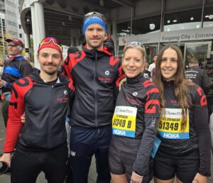 Auch die Mixed-Staffel der TSG mit Jonas Trost, Kai Bender, Niklas Mathon und Simone Jaick bewältigte die Marathonstrecke in 4:09:36 Stunden und lief damit ein überzeugendes Rennen.