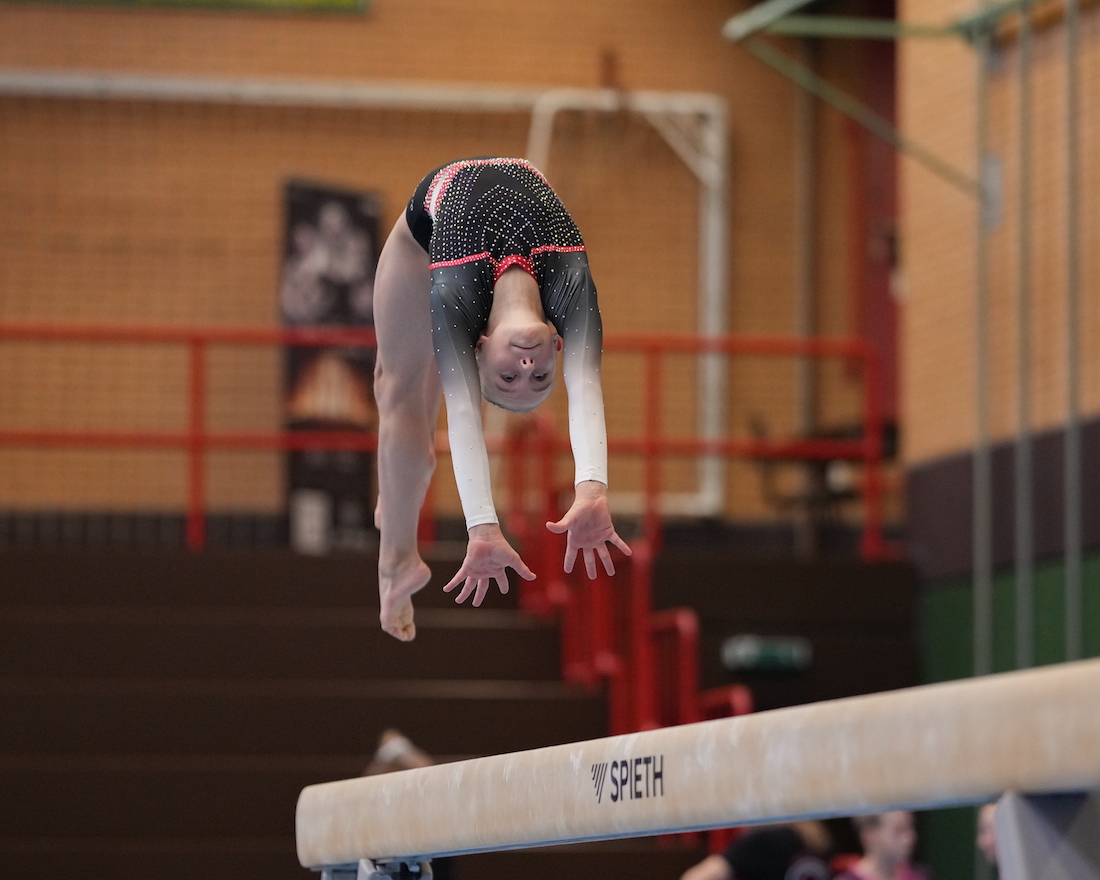Eintracht Frankfurt begann am Balken, wo Jara Spriestersbach eine hochwertige Übung zeigte und lediglich bei der akrobatischen Serie Menicelli-Spreizsalto einen Absteiger in Kauf nehmen musste. Mit 11,65 P. konnte sie ein Ausrufezeichen setzen, erturnte nicht nur die höchste Wertung für ihr Team sondern sogar die zweithöchste Wertung aller Turnerinnen an diesem Gerät. Eine starke Leistung.