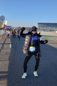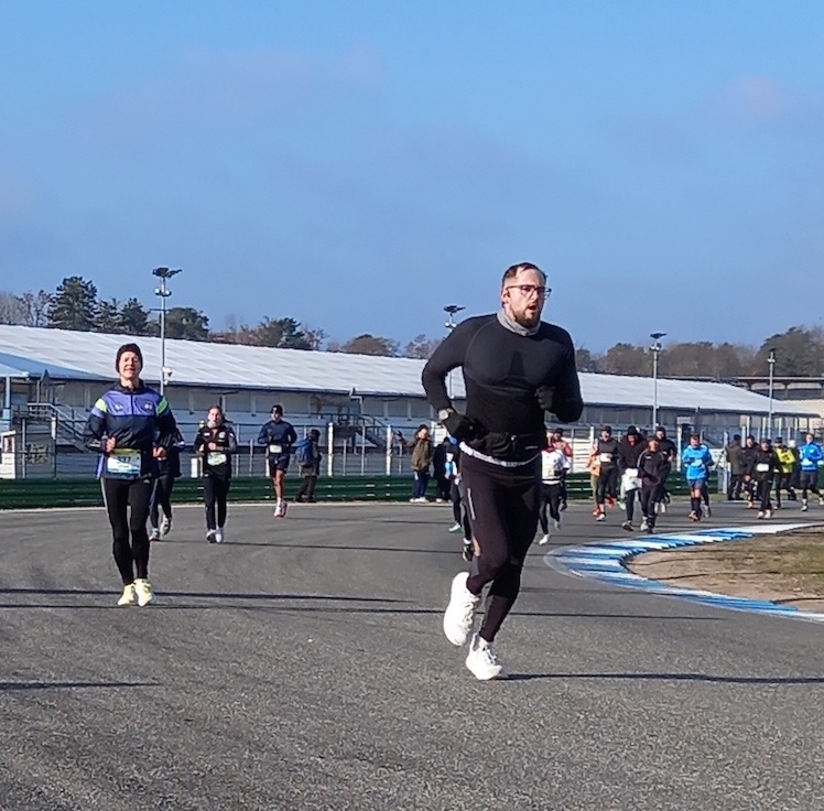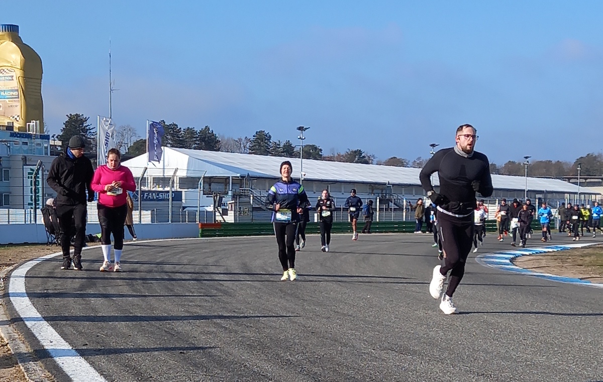Tobias Roos hatte bei einer Ehrung in Frankfurt einen Startplatz für den Marathon auf dem Hockenheim Ring gewonnen, konnte aber nicht selbst starten, weil er zur gleichen Zeit im Trainingslager in Teneriffa weilt. Esther Vornholt von der VLG Eisenbach sprang für ihn ein und erlebte bei eisiger Kälte eine der bedeutendsten Rennstrecken der Welt aus der Perspektive einer Läuferin. In 9 Runden a 4,46 Kilometer spulte Esther in gewohnter Manier die Strecke mit den Highlights wie Motodrom, Spitzkehre und Südkurve ab und erreichte nach 42,195 Kilometern das Ziel auf der Original Formel 1 – Ziellinie nach 4:01:56 Stunden. Unter 2.210 Startern bedeutete das Platz 25 aller Frauen und Rang 2 der Altersklasse W 45.