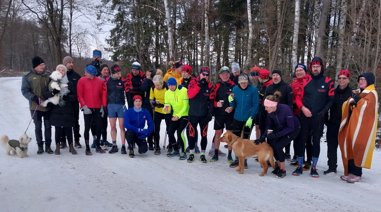 Wie schon so oft in den letzten Jahren, so lag auch heute in und um Eisenbach der Schnee. Was fehlte, war die Sonne, was störte, war der eisige Wind. Was schön war, dass es an diesem Tag nicht um Platz und Zeit ging und so konnte jeder der fast 30 Aktiven nach Lust und Laune sein Tempo bestimmen. Lars Breuer, Petra Häuser, Stefanie Hecker und Heinz Dankers von der LG Brechen waren als Gastläufer dabei. Um 11.00 Uhr ging es vom Eisenbacher Sportplatz hoch in der Erbacher Wald, über die Rennchaussee nach Dombach und vom dortigen Sportplatz hoch zum Kuhbett, wo Bernd Falkenbach mit heißem Tee und Kaffee die Akteure erwartete. Hier hatten sich auch die VLG Walkinggruppe und die Wanderer eingefunden und so ging es gegen 12.30 Uhr zurück über den Hasselbacher Sportplatz und Hof Hausen bis zum Ziel am Sportplatz Eisenbach, wo es noch einmal Heißgetränke und einige Snack-Riegel gab. Auch die restlichen Plätzchen eines edlen Spenders fanden dankbare Abnehmer. Ein Naturerlebnis der besonderen Art gab es für alle Teilnehmer, kreuzte doch ein Rudel geweihter Hirsche kurz vor Eiseenbach ihren Weg.