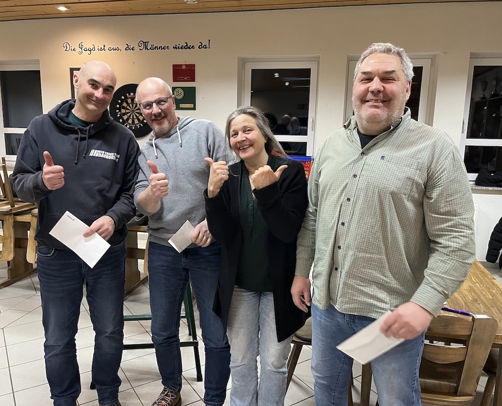 Schon seit vielen Jahren ist es ein fester Bestandteil im Veranstaltungskalender des RSV Dauborn: Das Doppelkopfturnier. Dieses Jahr wieder am gewohnten Termin. Dies wurde sehr positiv aufgenommen, was man auch an der Anzahl der Mitspieler sah, die deutlich höher als im letzten Jahr war. Auch zwei Liebhaber des tollen Kartenspiels aus „Hollesse“ gehörten zum Teilnehmerfeld. Am Ende zogen Spieler und Verantwortliche gleichermaßen ein positives Resümee. Alle hatten Spaß und Freude und fiebern schon der 17. Auflage im nächsten Jahr entgegen. Folgende Platzierungen standen am Ende zu Buche: 1. Platz: Thomas Triesch, 2. Platz Thomas Dombach, 3. Platz: Bodo Büttner. Die Siegerehrung übernahm Annette Hübsch und die 3 Platzierten durften sich über einen kleinen Geldpreis freuen. Für Snacks und kühle Getränke war ausreichend gesorgt, Spaß und Freude sorgten für einen kurzweiligen und lustigen Nachmittag. Ein Dankeschön geht nicht nur an das Orga-Team mit Gerold Jäger, sondern auch an alle Teilnehmer und Teilnehmerinnen. (D.B.)