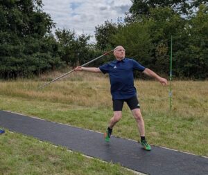 Jörg Sauerwein bei seinem letzten Speerwurf in der Altersklasse M60