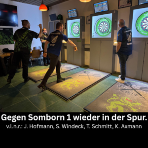 In der HDV-Oberliga Nord/Ost hatten die TuS-Staffel Green Lions 1 mit Somborn 1 aus Freigericht einen direkten Tabellennachbarn zu Gast an der Mainstraße. In einer spannenden Partie setzten sich die Löwen am Ende mit 10:5 (36:22 Legs) durch und konnten sich damit deutlich von den hinteren Tabellenplätzen absetzen.