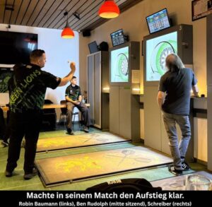Das zweite Nachholspiel in der RDV-Kreisliga 2A hatte die Dritte Mannschaft der TuS-Staffel Green Lions 3 im Heimspiel gegen DC NO Score 1 aus Schöffengrund vom 19. Spieltag. Hier konnten sich die Löwen in einer umkämpften Partie am Ende mit 8:4 (29:20 Legs) verdient durchsetzen und verlassen mit diesem Sieg erstmals in dieser Saison den letzten Tabellenplatz. Für einen historischen Moment bei den Green Lions sorgte der erst 11-jährige Lennox Legel. Er erzielte als jüngster Löwe überhaupt im zweiten Ligaspiel seinen ersten 180er Highscore.