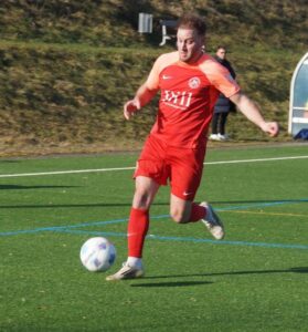 45 Minuten waren gespielt auf dem Kunstrasenplatz in Breidenbach. Der TuS Dietkirchen wurde seiner Favoritenrolle gerecht und hatte im Stile einer Spitzenmannschaft binnen zehn Minuten für klare Verhältnisse gegen das Tabellenschlusslicht der Verbandsliga Mitte gesorgt. Alles sah nach einem souveränen Auswärtssieg für die Elf von Marco Reifenscheidt, die verletzungsbedingt auf Innenverteidiger Julian Eufinger verzichten musste, aus. Heene (23.), Maurer (32.) und Steinhauer (33.) hatten in Durchgang eins für die vermeintlich komfortable Pausenführung für Schwarz-Rot gesorgt. Vermeintlich! Denn spätestens nach dem 1:3 durch Moritz Filipzik (63.), der bei den Hausherren per Foulelfmeter neue Hoffnung aufkeimen ließ, war es vorbei mit dem entspannten Samstagnachmittag in der Fremde. Und es wurde noch ungemütlicher: Der Anschlusstreffer des eingewechselten FV-Routiniers Felix Baum (73.) war der Startschuss für eine hektische Schlussphase, in der sich die TuS-Bank gleich zwei gelbe Karten einhandelte. Es begann das große Zittern, vor allem, nachdem der TuS gleich mehrfach versäumte, den vierten Treffer nachzulegen und den Sieg unter Dach und Fach zu bringen. So dauerte es gar bis zur Nachspielzeit, ehe erneut Pascal Heene per Kopf das erlösende Tor zum 4:2-Sieg in der Fremde erzielte und zum Matchwinner für den TuS avancierte (90.+4). Damit bleibt Dietkirchen im Jahr 2026 weiter ungeschlagen und setzt seine beeindruckende Aufholjagd unter Neu-Coach Reifenscheidt weiter fort und pirscht sich vorerst an die Verfolgergruppe der Verbandsliga heran.
