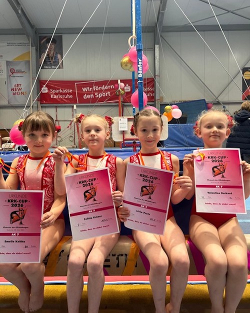 Gleich elf Turnerinnen der Altersklassen 6 bis 9 aus der Turn-Talentschule Limburg-Elz waren der Einladung der Kunstturnregion Karlsruhe gefolgt und zu einer ersten Standortbestimmung in diesem Jahr zum KRK-Cup ins Turnzentrum nach Karlsruhe gereist.