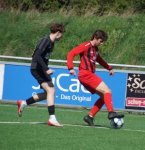 In der 23. Minute fiel dann bereits der Ausgleich: Tobias Doogs verwandelte eine Ecke direkt – ein sehenswerter Treffer zum 2:2. Das Spiel blieb in der Folge intensiv, mit Chancen auf beiden Seiten.